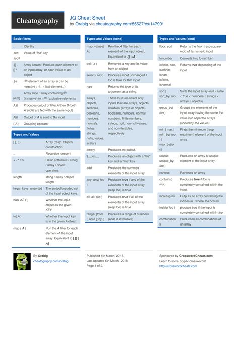 Jq Cheat Sheet. Advanced network forensics and analysis. Web jq '.' test.json.