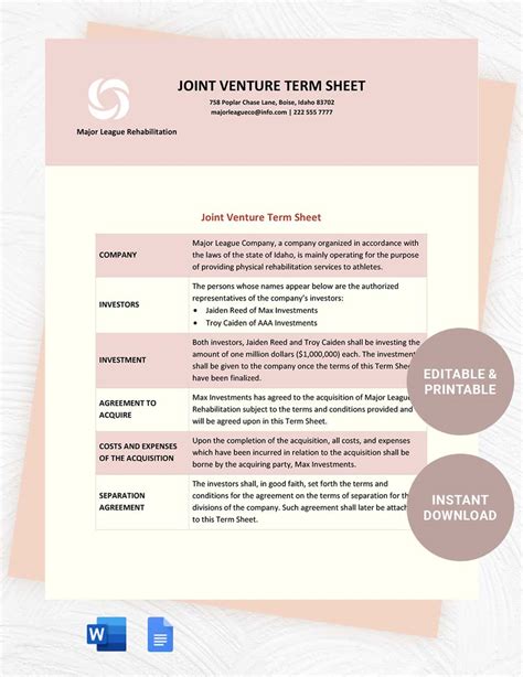 Web joint venture term sheet february 25, 2021 (1 min read) setting up a joint venture?