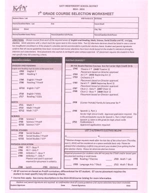 Katy Isd Course Selection Sheet. Review available courses for incoming 6th. Counselors will meet w/ students.