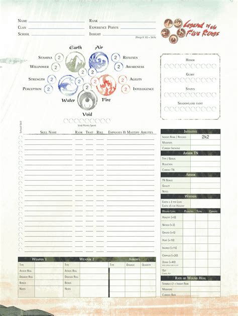 L5r 4th Edition Form Fillable Character Sheet Printable Forms Free Online