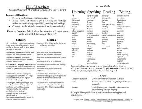 Writing Language Objectives Cheat Sheet LessonPick Language