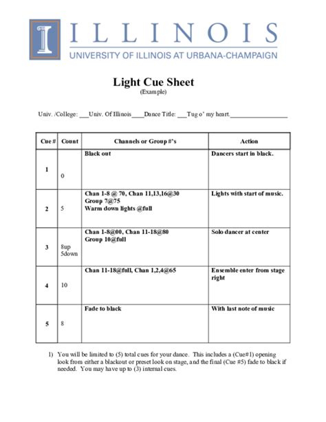 Lighting Cue Sheet Example. See examples of lighting plan, section plot,. Web detailed lighting cue sheet this example extract is from the beginning of a lighting cue sheet for hansel and gretel.