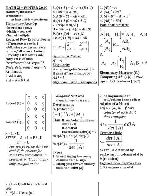 Linear Algebra Cheat Sheet. Web a linear system of equations can be represented in matrix form using an augmented matrix, which takes the form [a | b] if we have the equation ax=b. If in addition a has linearly.
