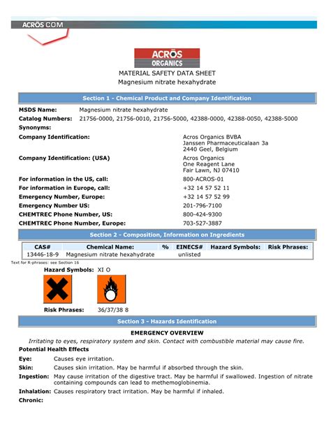 Magnesium Nitrate Safety Data Sheet. Web product name magnesium nitrate hexahydrate cat no.