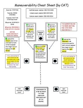 Maneuverability Test Cheat Sheet. You must drive forward through a box (9' by 20') formed by 4 markers. Steer to the right or left of the point marker (20'.