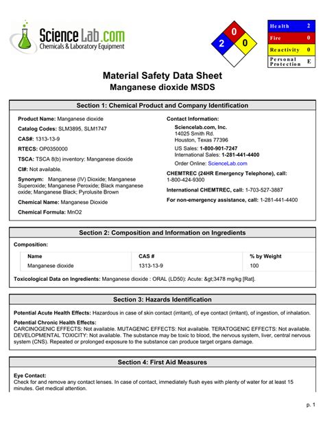 Manganese Dioxide Safety Data Sheet. Wear appropriate protective gloves to prevent skin. No osha vacated pels are listed for this chemical.