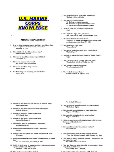 Marine Corps Knowledge Sheet. Web [a] marine corps common skills handbook, book 1a (pcn 50600000900) 102.1 discuss what significant events occurred during the following years in marine corps history: This gouge was put together by the information i was.