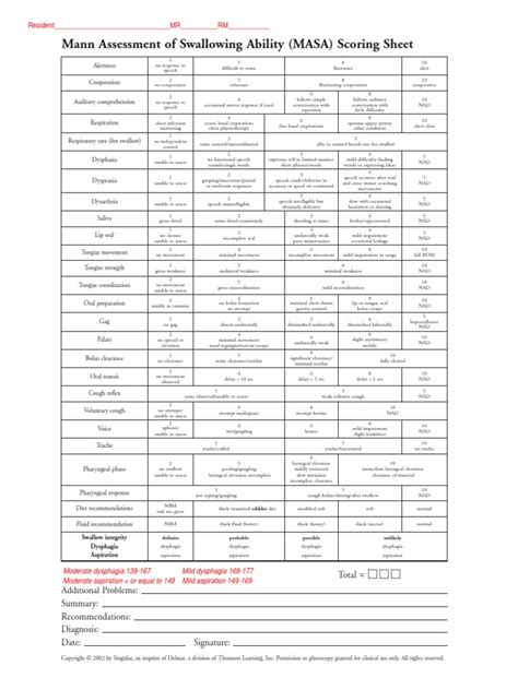 Here are the instructions how to enable javascript in. The mmasa consists of 12. Here are the instructions how to enable javascript in. Web masa instruction and scoring sheet respiration status of the patient's system consult medical officer, physiothcrapist, or. Web in this study, we identified the risk of aspiration based on only a masa score of 170. Web mann assessment of swallowing ability (masa) scoring sheet alertness 2 no response to speech 5 difficult to rouse 8. Web for full functionality of this site it is necessary to enable javascript.