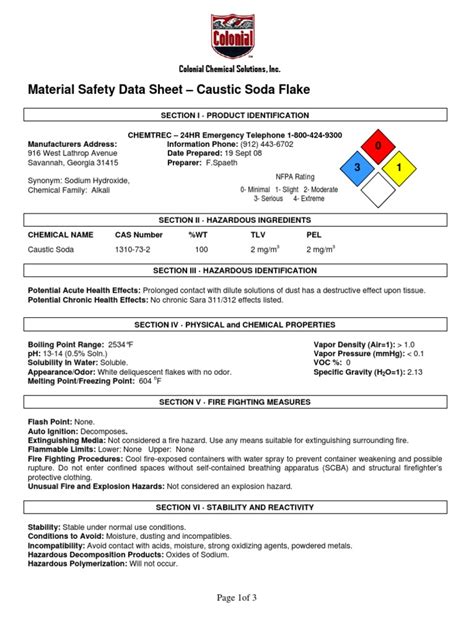 Material Safety Data Sheet Caustic Soda. Web safety data sheet (caustic soda 50% solution) page 2 of 14 hazard statements: This material has exhibited moderate toxicity to aquatic organisms.