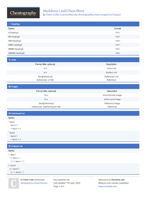 This is intended as a quick reference and showcase. For more complete info, see john gruber's. Web you can download this cheat sheet as a markdown file for use in your markdown application. Take your markdown skills to the next level. Web adam pritchard edited this page on mar 27, 2022 · 97 revisions. This is intended as a quick reference and showcase. Web which is numbered\> markup : Web markdown cheat sheet a public service from nathan lawrence ( @nathanblawrence) narrow: Web main code readme ⬇️ the only markdown cheatsheet you need here you can find & download pdf version of the complete markdown cheatsheet. Learn markdown in 60 pages.