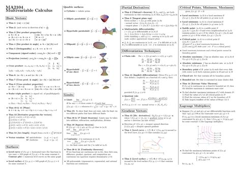 Multivariable Calc Cheat Sheet. Find and classify the critical points of the following functions: The following only apply only if a boundary is given 1.