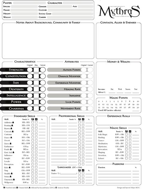 Form Fillable Mythras Char Sheet Printable Forms Free Online