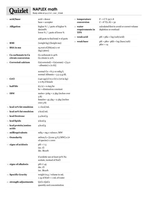 Web loading dose (ld) (desired concentration x vd) / f. (the time it takes for the amount. Web naplex calculation formulas to memorize. Osmolarity (mosm/l) click the card to flip 👆. Osmolarity= concentration x # of.