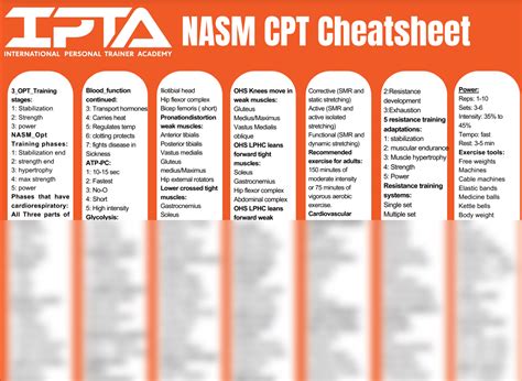 Nasm Cpt Cheat Sheet. Professional development and responsibility cpt exam study guide section 1: Web nasm cpt exam cheat sheet + a few more 5.0 (6 reviews) three stages of the opt model click the card to flip 👆 1.