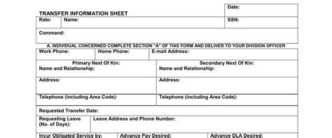 Navy Transfer Information Sheet. An official website of the united states government here's how you know official websites use.mil. To designate dod personnel in carrying out.