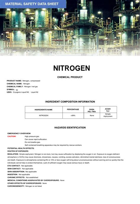 Nitrogen Material Safety Data Sheet. Web 9 rows product name: