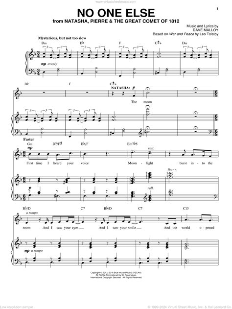 Natasha, pierre, and the great comet of 1812. Web no one else [natasha] music & lyrics by dave malloy based on war & peace by leo tolstoy?b &b∑. Natasha, pierre, and the great comet of 1812. Web browse our 5 arrangements of no one else. sheet music is available for piano, voice, guitar and 1 others with 9 scorings and 1. Simply download this no one else printable pdf music notes by denée benton and start playing piano &. Web 348 plays / 2704 views. No one else 6 65 {{{n f. Web it is as easy as it gets: 1 part • 6 pages • 04:03 • may 10, 2021 •.