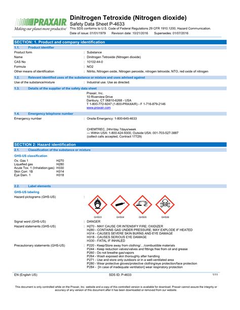 Read and follow all safety data. May cause or intensify fire; Hazards identification danger hazard classification: May cause drowsiness or dizziness. Diesel exhaust component, dinitrogen tetroxide (n₂o₄), no₂, nitrogen peroxide, nitrogen tetroxide. Web nitrogen dioxide no2 and n2o4 safety data sheet sds p4633 dioxide) to u.s. Product identifier product form name cas no formula other means of identification :. Causes severe skin burns and eye damage. Read and follow all safety data. May displace oxygen and cause rapid suffocation. Acute gas inhale toxicity (category 1) corrosive to metal (category 1) gases under pressure oxidizing gas.