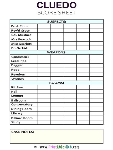 Online Cluedo Sheet. It makes the (often messy) note taking. Clue (or cluedo outside of north america) is a game published by hasbro in which players make.