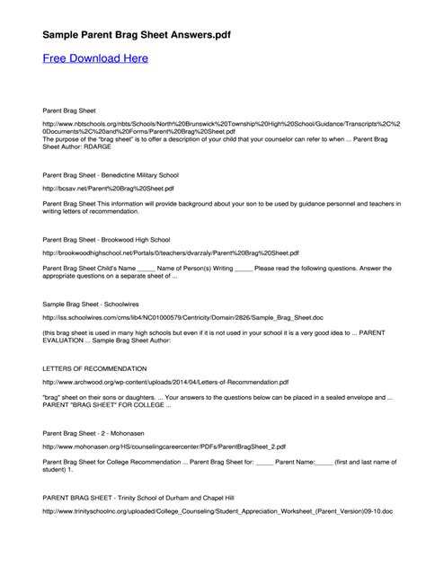 Parent Brag Sheet Example Answers. Web learn what a parent brag sheet is, why counselors ask for it, and how to write one for your child's college applications. Hey guys, my counselor asked my parents to fill out a.