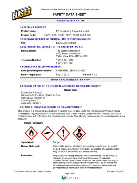 Pb Blaster Safety Data Sheet. Web 1 product and company identification product name: Web product and company identification.
