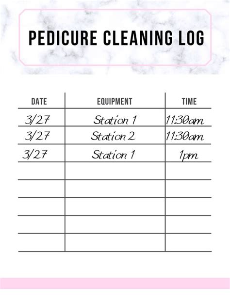 Pedicure Log Sheet. Web sanitation requirements cleaning and disinfection records license applications, required publications and signage, mobile. Web fill in the date check the “not used” box if pedicure services were performed and the spa was cleaned, check the “portable jet.