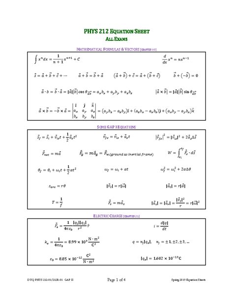 Phys 212 Equation Sheet. Exams in this course will be given at the c omputer b ased t esting f acility. E v & & 12 12 122 0 12 1 4.
