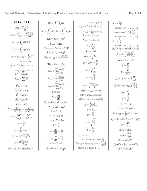 Physics 211 Equation Sheet. Exams in this course will be given via the smart.physics system and proctored by.