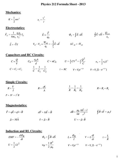 Physics 212 Formula Sheet. E v & & 12 12 122 0 12 1 4. Web find the formula sheet for phys 212 fall 2021 and the practice exams for each hour of the exam.