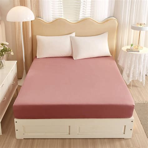 PinkMemory Queen Fitted Sheet Pink Peach Cotton Fitted Bed Sheet with