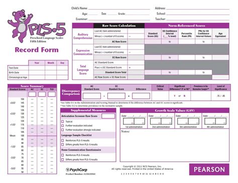 Pls 5 Score Sheet. Total language, auditory comprehension, expressive.