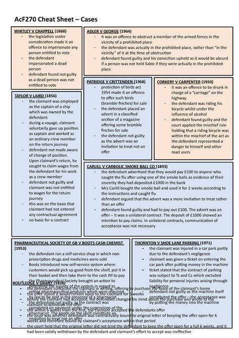 Case law summary AcF270 Cheat Sheet Cases WHITLEY V CHAPPELL (1868