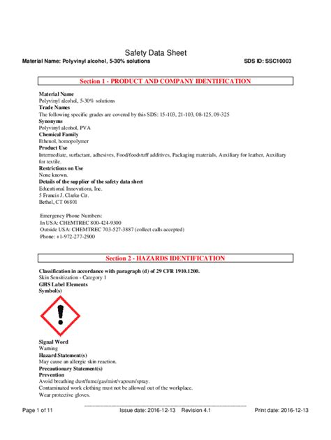 Web material safety data sheet or sds for polyvinyl alcohol 114266 from merck for download or viewing in the browser. Web material safety data sheet or sds for polyvinyl alcohol 114266 from merck for download or viewing in the browser.