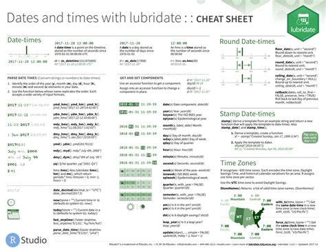 R Lubridate Cheat Sheet. Web changes the components of a date object.