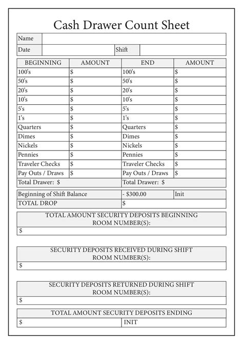 Web a register cash count sheet is a document that records the amount of cash on hand in a business's register or cash drawer.