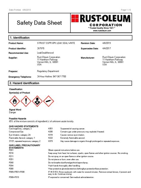 Rustoleum Safety Data Sheet
