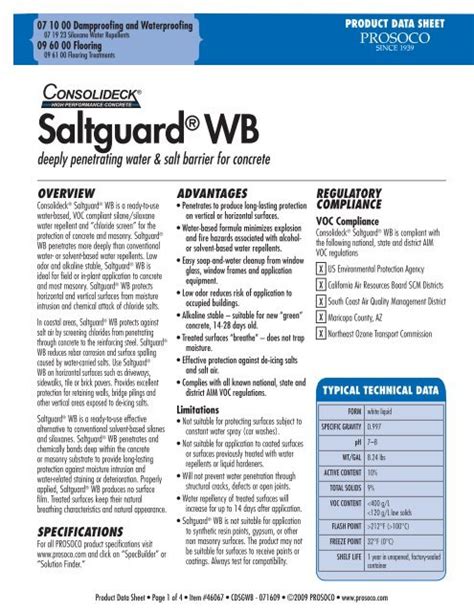 Saltguard Wb Data Sheet. Vtages deep penetration for pr vertical and zontal.