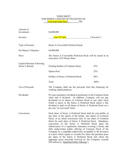Sample Vc Term Sheet. Web vc term sheet templates. Whether the initial agreement as to terms is structured as a “term sheet” or a “letter of intent” is a technical difference, and the.