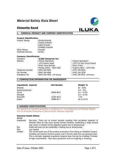 Sand Safety Data Sheet. Identification 1.1 product trade names: Web section 2 — hazards identification.