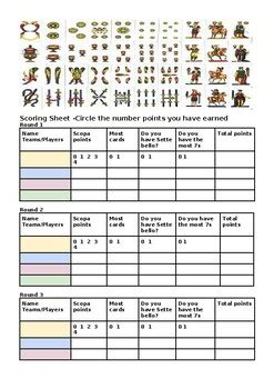Scopa Score Sheet. Web points are scored for taking the most cards in total, for taking the most cards in the suit of coins (or diamonds), for.