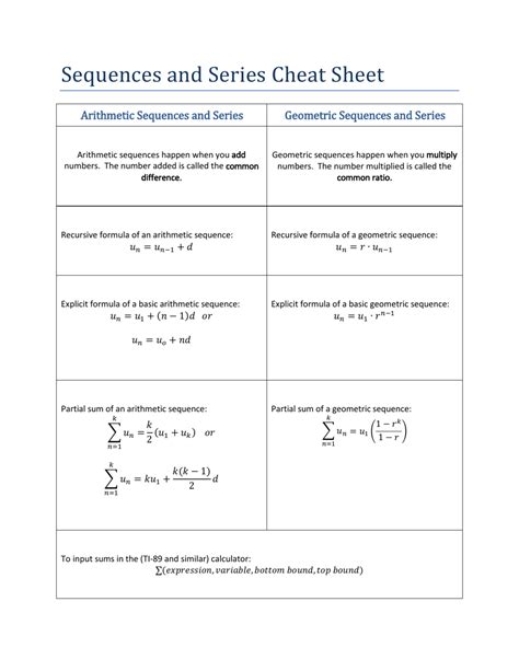 Series And Sequences Cheat Sheet. We discuss whether a sequence converges or diverges, is. Web in this chapter we introduce sequences and series.