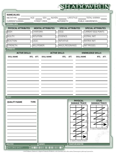 Shadowrun 4th Edition Character Sheet Fill Online, Printable