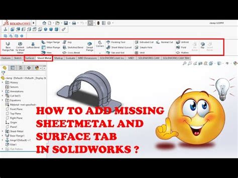 | how to add missing sheetmetal and surface tab in solidworks. Web i know this is inanely simple, but i cannot get the sheet metal tab to dock at the top with the rest of the toolbars.