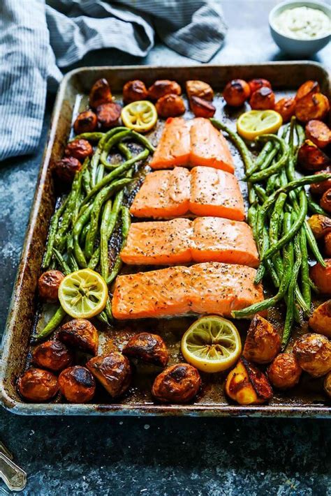 Sheet Pan Dinner Salmon. Delicate salmon with a sweet and spicy dijon mustard glaze is topped with crunchy. Line a rimmed baking sheet with aluminum foil and spray with cooking spray.