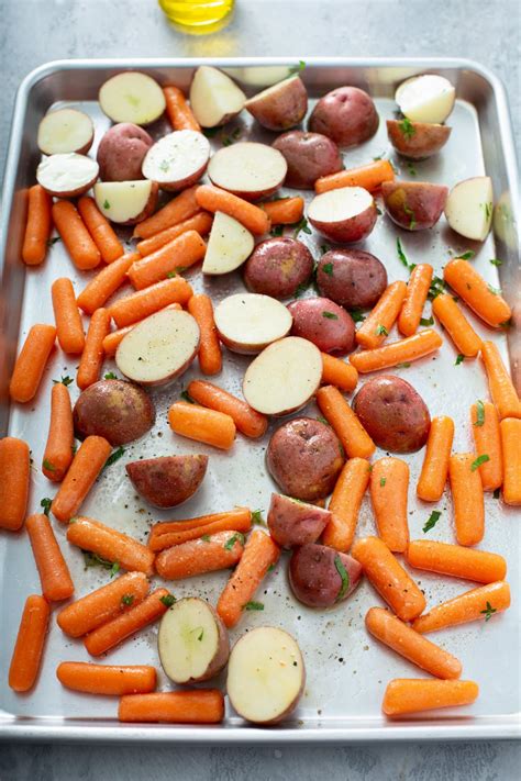 Web instructions arrange a rack in the middle of the oven and heat the oven to 425°f. Cut the cararots with a roll cut: Add the carrots and potatoes to. Line a large rimmed baking sheet with parchment paper or foil and spray with nonstick. Place the olive oil, butter, garlic, salt, pepper and thyme in a large bowl. Web instructions preheat the oven to 400 degrees f. Preheat your oven to 400˚f and line a large baking sheet with parchment paper and set. Coat a sheet pan with cooking spray. Web how to make roasted potatoes and carrots prep the oven and baking sheet. Trim off the root end on a slight diagonal. Large pieces will take longer to cook, if you’re short on time, cut the veggies a bit smaller to reduce cooking time.