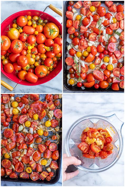 Spread tomatoes, onion and garlic in an even layer on a rimmed baking. Cut the top and bottom ends off the bulb of garlic. Place 12 roma tomatoes, 1 whole red onion,1 bulb garlic, and fresh basil on a sheet pan. Preheat the oven to 375 degrees. Slice off the top of the head of garlic, exposing the cloves. On a large sheet pan arrange halved or quartered tomatoes, sliced onions, and whole garlic cloves. You'll only use half of the cloves in the recipe, but roast the whole head and save the. Web preheat oven to 400°f.