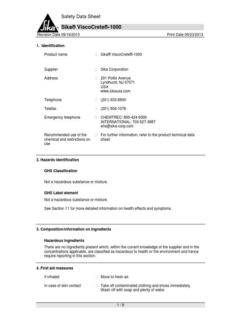 Sika 1000 Data Sheet. This guide specification includes test methods,.