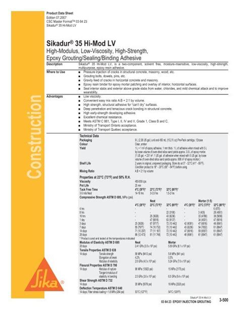 Sikadur 35 Data Sheet. 3.5 l of epoxy mortar.