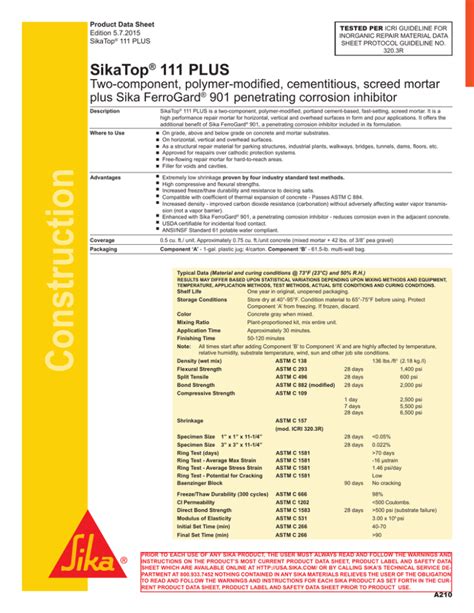 Sikatop 111 Plus Data Sheet. It is a high performance repair mortar for horizontal, vertical and overhead surfaces in form and. 1 gallon (3.8 liters) plastic jug;