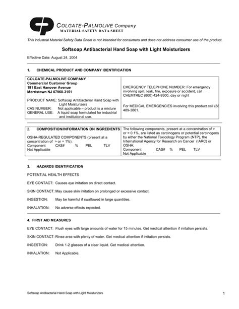 Softsoap Msds Sheet. Identification product name product code material :